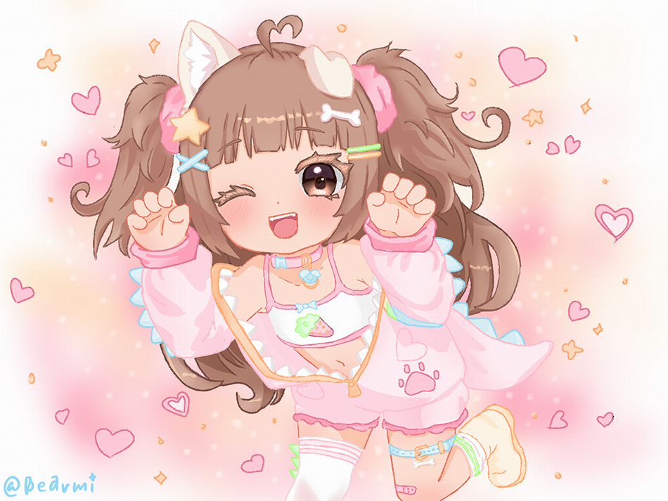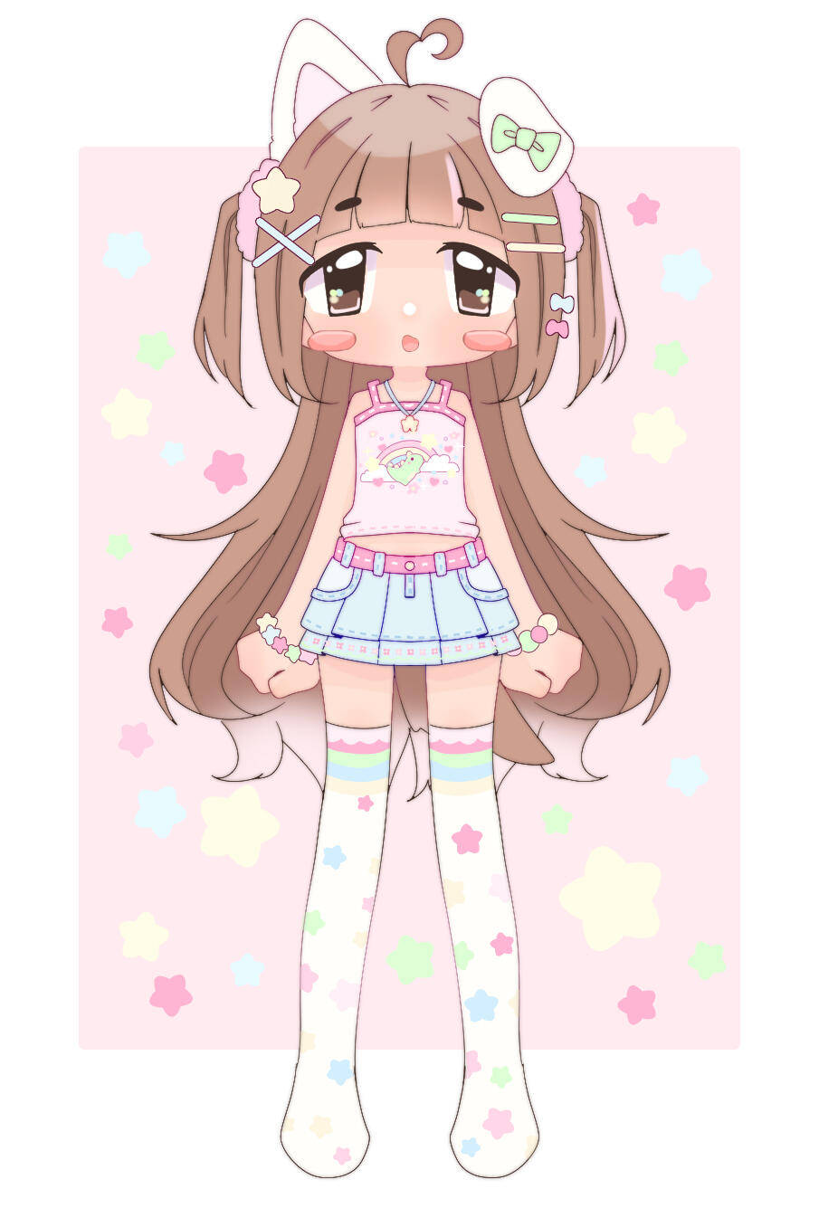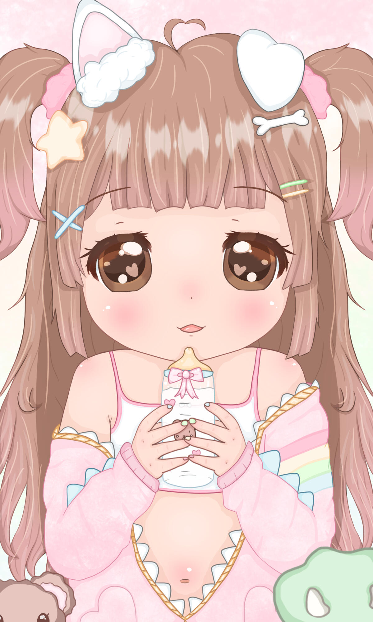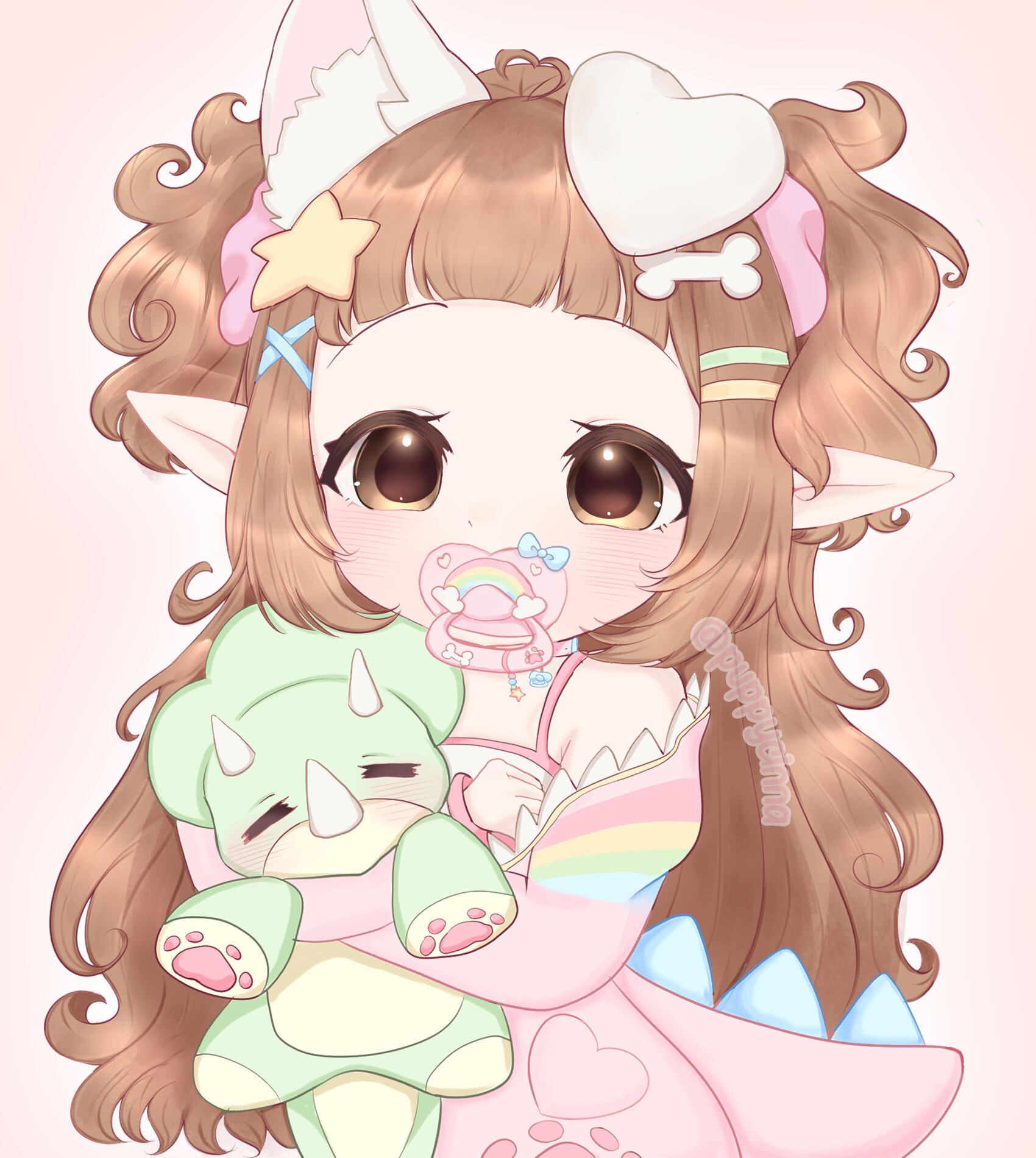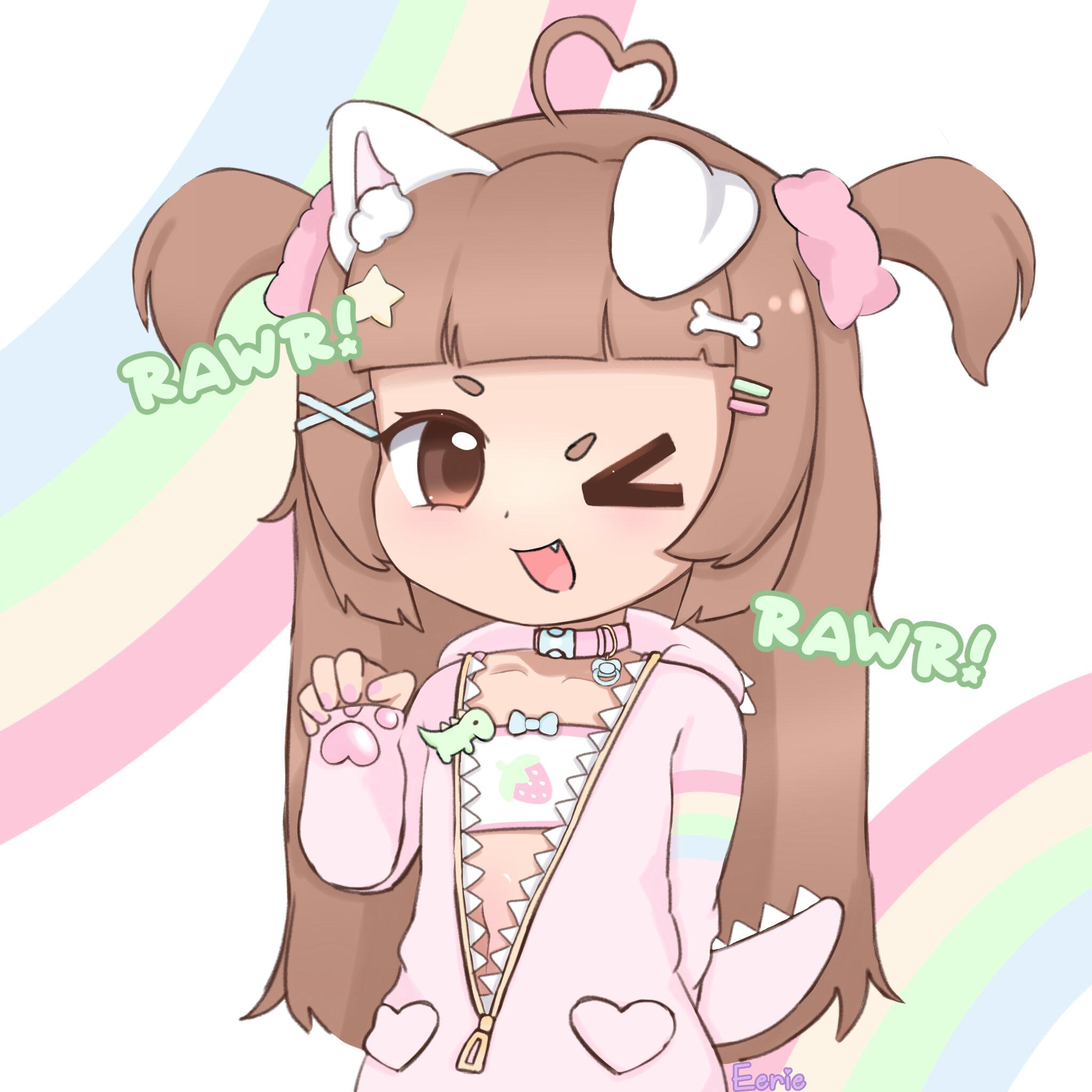 only sfw art of cinna is allowed!! cinna has a small, petite body and a flat chest. she has a chubby belly and squishy thighs although a thinner body type is fine too. she is 3'6" (110 cm)! her hair is usually messy and her hair accessories can be changed. she loves pastel rainbow colors (especially pink/light red, yellow, green, and blue), plushies, baby items, puppy themes, toys, dinosaurs, and cute things. cinna is a shy but playful puppy and loves pretending to be a dinosaur!